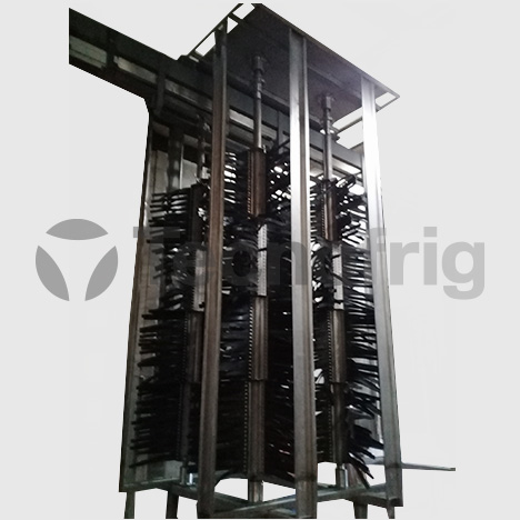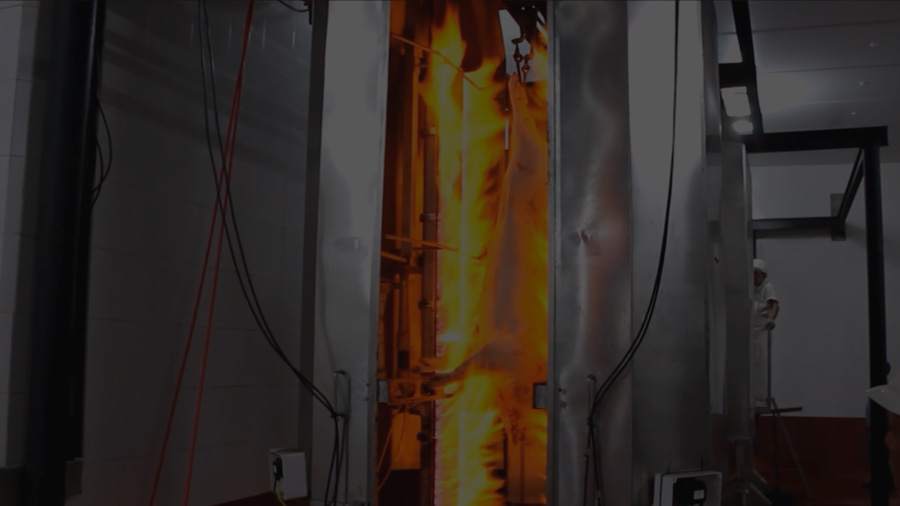Contribuindo à redução da mão de obra no processo, automatiza-se o acabamento das carcaças na chamuscagem e no polimento, com um sistema de controle total dos tempos e das velocidades.